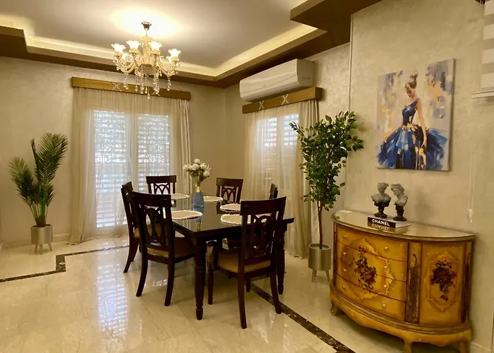 Situated approximately a 10-minute drive from Google Egypt, the spacious 360 m² Luxurious New Cairo Villa Private Garden & Prime Location also boasts easy access to El Giza train station which is 38 km away. For guests with an active lifestyle, pool are provided.